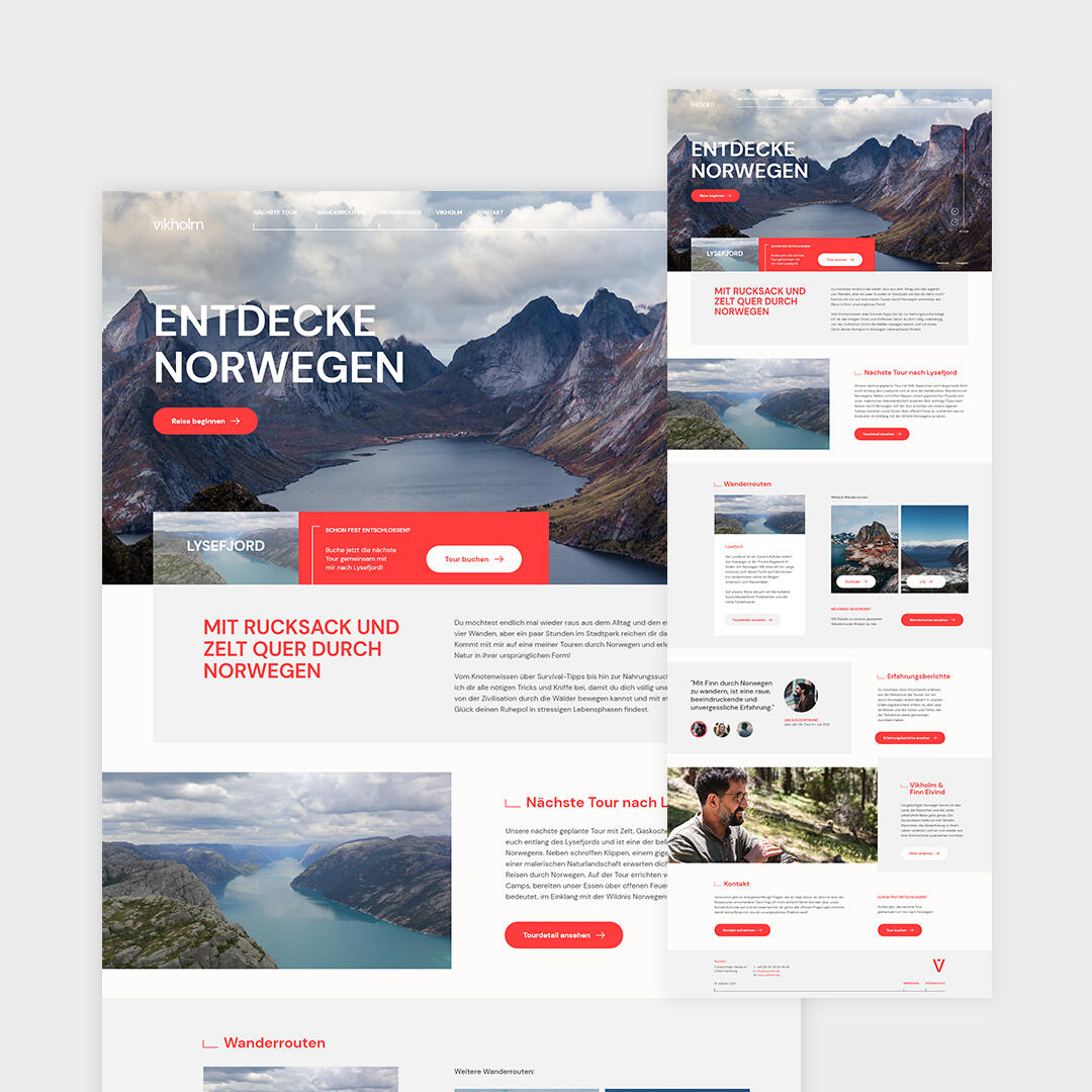vikholm, ein Anbieter für norwegische Survival Touren, vermittelt in seinen Kursen tiefes und wertvolles Wissen. Doch auf ihrer Webseite merkte man von dieser Expertise wenig. Die ursprüngliche Seite litt unter geringem Engagement: die Nutzer verstanden die recht komplex aufgestellten Angebote nicht schnell genug und brachen den Weg zur Kursbuchung vermehrt ab. Die Darstellung der Inhalte mutete zudem sehr nach Website-Baukasten an. Das Resultat war eine spürbar niedrige Conversion Rate.Unsere gemeinsame Arbeit begann mit einer fundierten Analyse der Customer Journey. Die Erkenntnis: der Schritt zur Buchung eines Kurses benötigt neben klaren Inhalten auch Elemente zum Vertrauensaufbau in den Anbieter. Die alte Struktur der Seite ignorierte diese essenziellen Aspekte stark.