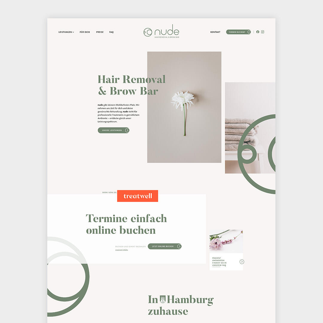 Als spezialisierter Dienstleister im Bereich Hair Removal und Brow Bar stand das Team von nude vor der essenziellen Herausforderung, das hohe Vertrauen und die persönliche Sorgfalt, die Kunden vor Ort erleben, auch digital abzubilden. Schließlich beginnt eine entspannte Behandlung nicht erst im Studio, sondern bereits bei der Terminbuchung.