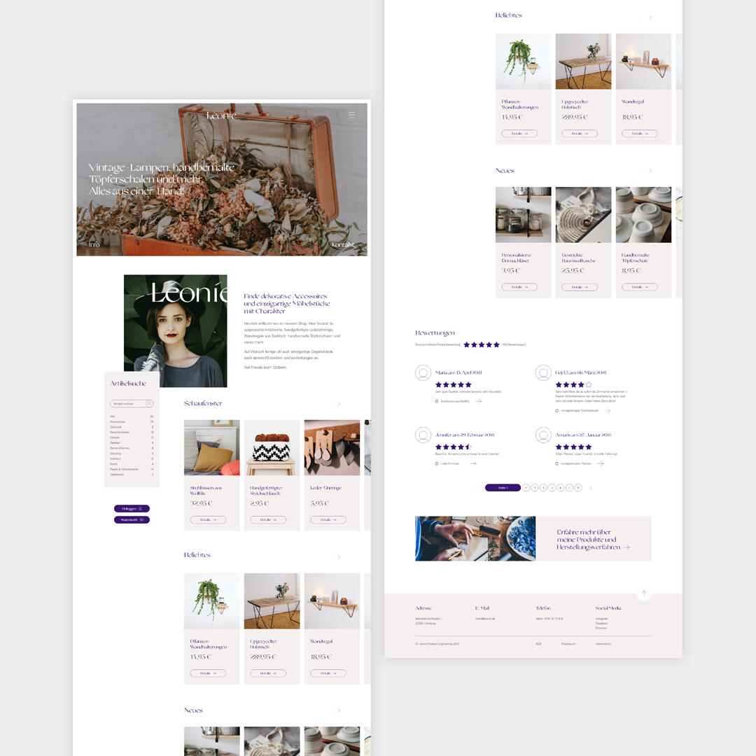 Leonie, eine selbsternannte Product Engineerin, haucht alten Produkten durch Upcyling neues Leben ein und schafft dadurch einzigartige Unikate. Doch genau diese Einzigartigkeit stellte ihre digitale Präsenz vor zwei fundamentale Herausforderungen: Wie bildet man den Lagerbestand, der sich pro Klick ändert, effizient und fehlerfrei ab? Und wie vermittelt man die tiefgreifende Handwerkskunst und den materiellen Wert jedes Einzelstücks in einer klaren, ansprechenden Produktdarstellung?Wir erkannten schnell: Hier ging es nicht nur um E-Commerce, sondern um das Schaffen von Vertrauen. Unsere Aufgabe war es also, Leonies Hingabe zum Produkt in eine reibungslose und ehrliche Customer Journey zu übersetzen.